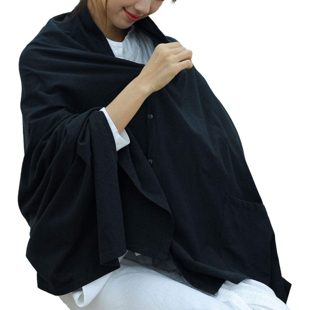 この授乳ケープは、0~4ヵ月の赤ちゃんに多いモロー反応に配慮し、外の音や光に敏感な赤ちゃんでも安心して授乳できるよう、光を通しにくいブラックとグレーの暗い色目で展開しています。赤ちゃんがケープの中で安心できる環境を整え、外出先でもスムーズに授乳ができます。