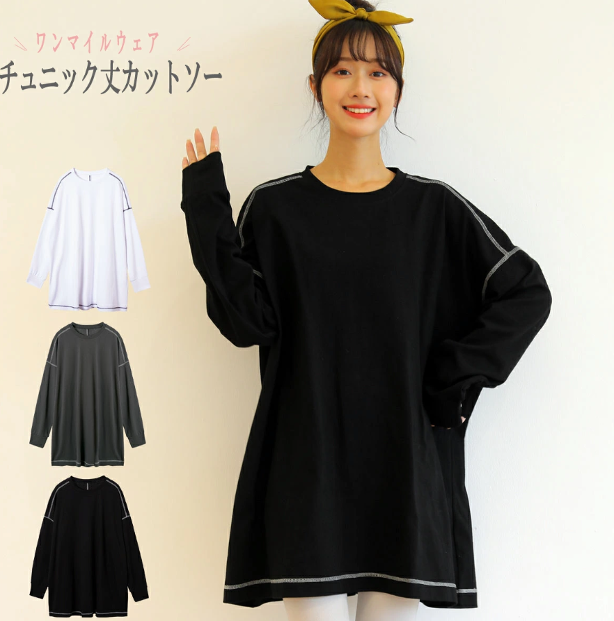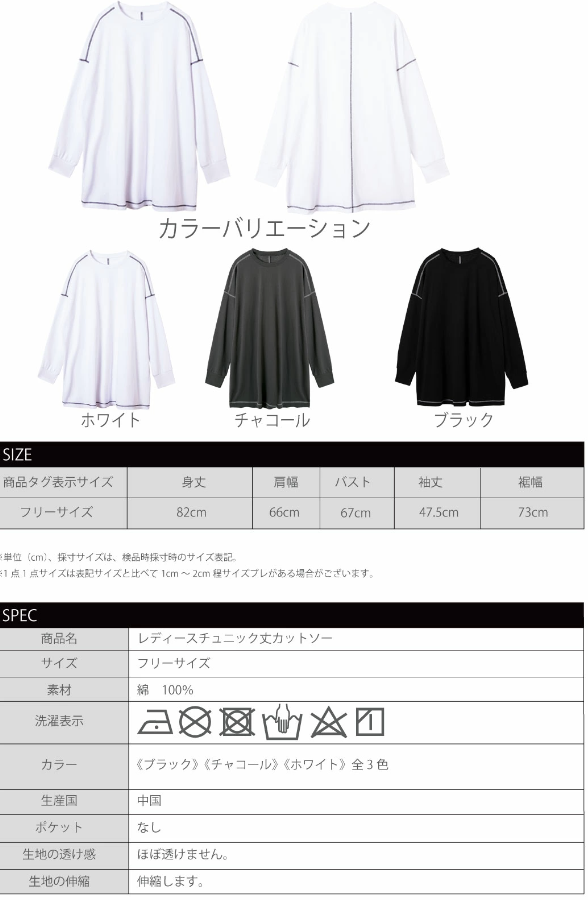 チュニック 長袖 レディース 綿 フリーサイズ tシャツ