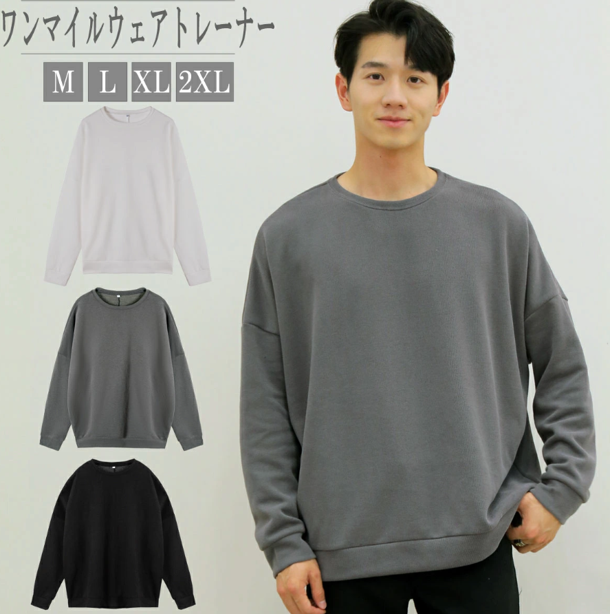 メンズ トレーナー おしゃれ 長袖 春 黒 ワンマイル 無地 トップス 部屋着