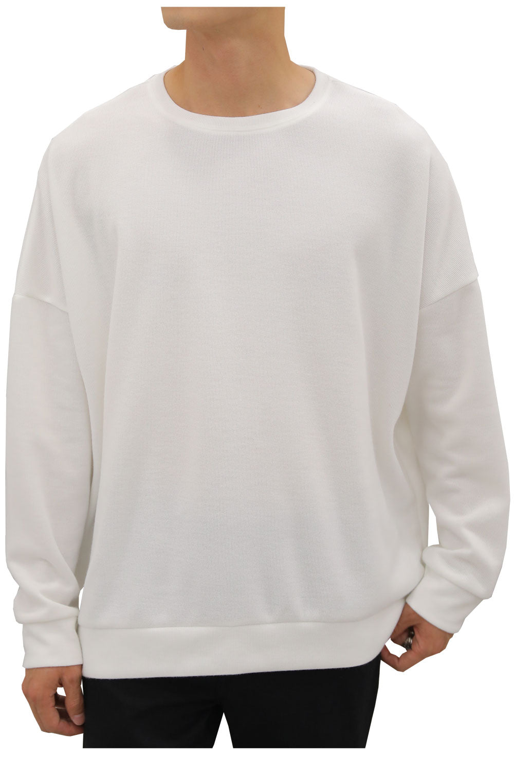 デザインはシンプルでありながら、ほどよいゆとりがあり、どんなボトムスとも相性抜群です。ジーンズやチノパンと合わせてカジュアルに、またはジャケットを羽織って少しきれいめなスタイルにも。重ね着もしやすいので、これからの季節のコーディネートに取り入れやすい一枚です。