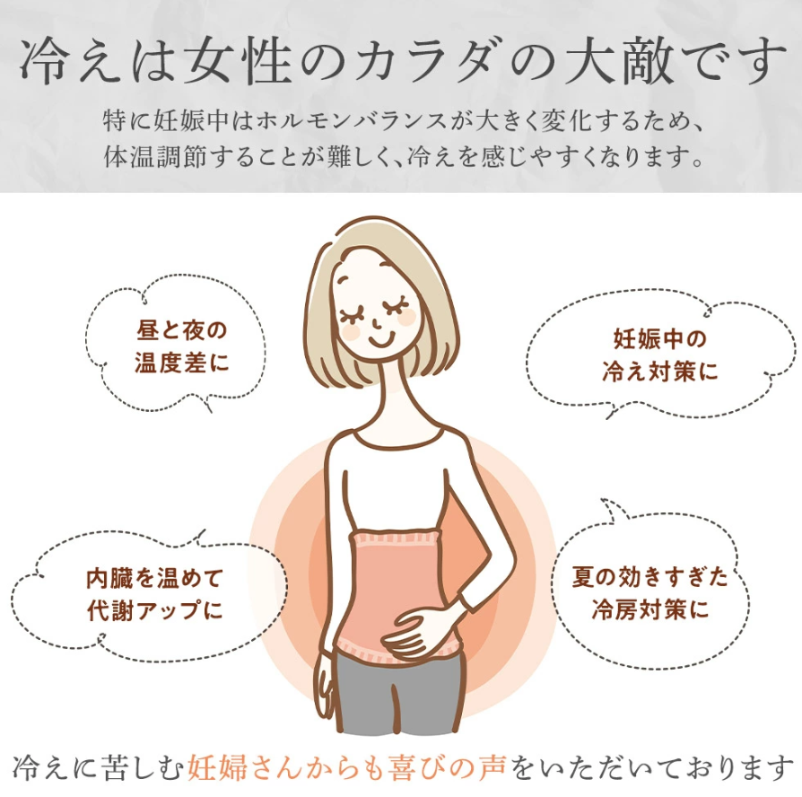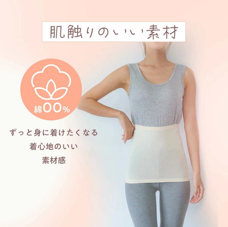 この腹巻は、産後のデリケートな体をやさしく包み込み、しっかりと温めてくれるアイテムです。柔らかい素材で作られており、肌に優しくフィットし、長時間着けていてもストレスを感じさせません。また、吸汗性と通気性にも優れているので、1年中快適にお使いいただけます。
