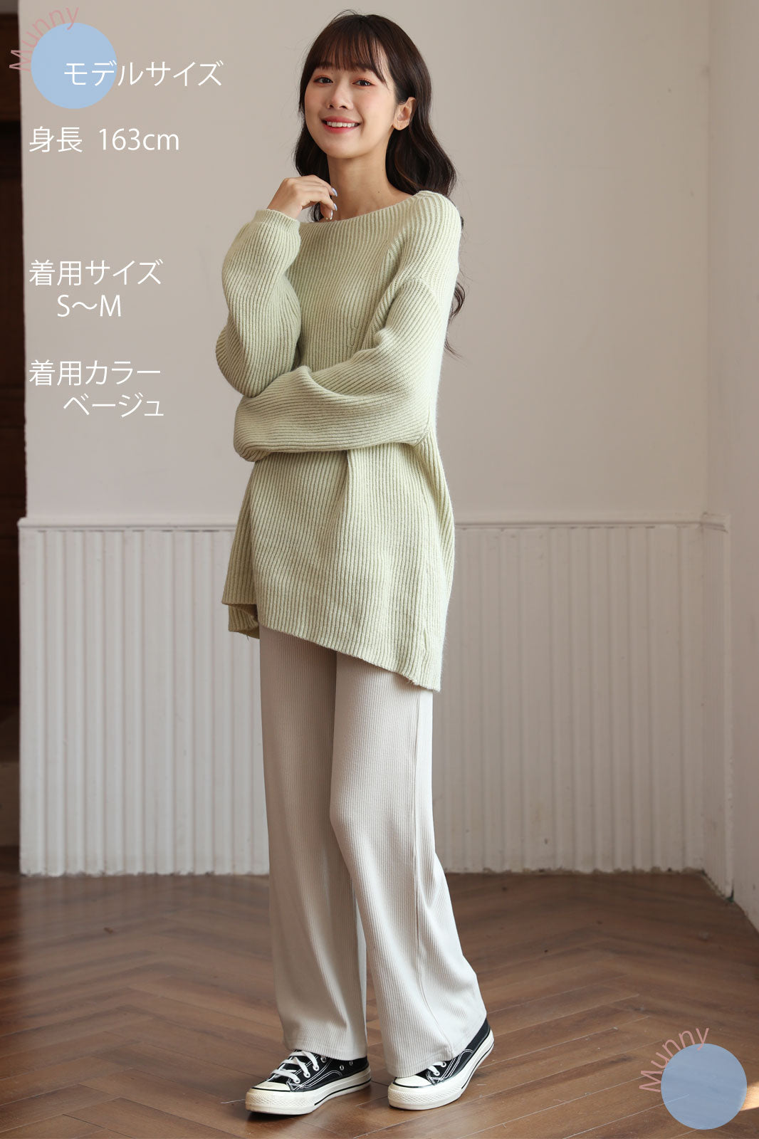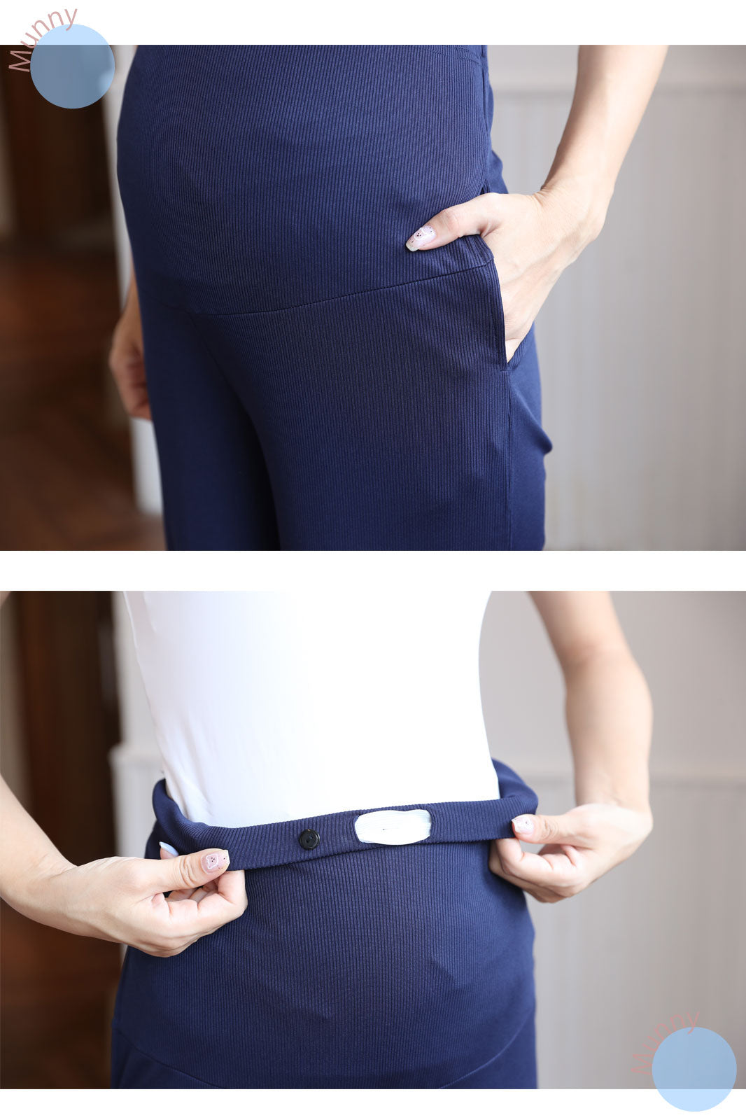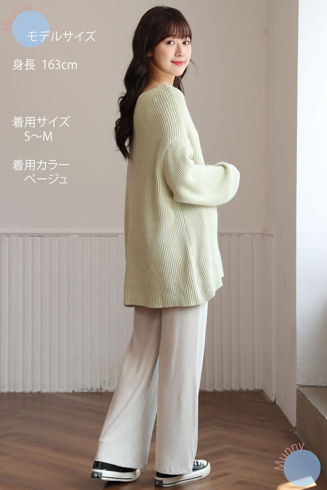 リブ素材ならではの伸縮性で、お腹が大きくなっても締め付けず、快適に過ごせます。さらに、ワイドシルエットが足のラインを美しくカバーしてくれるので、体型が気になる時期でも安心しておしゃれを楽しめます。