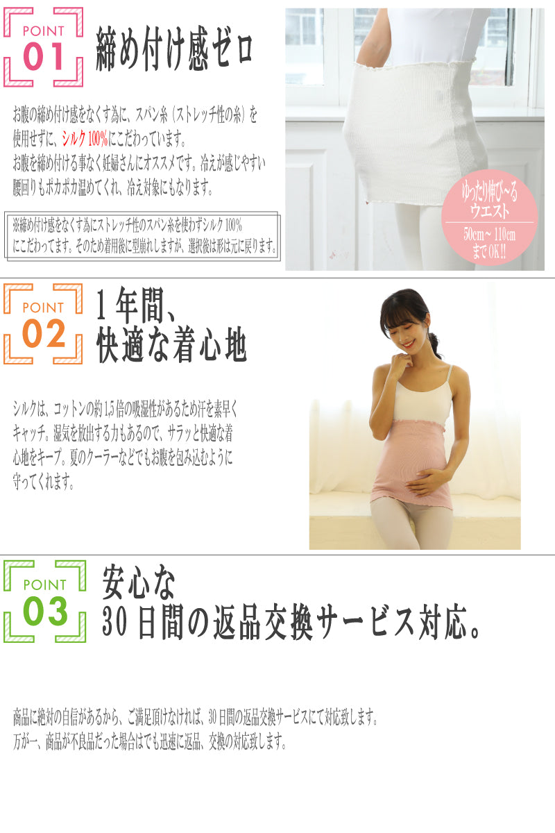 妊婦さんのための締め付けないシルク100%の腹巻き