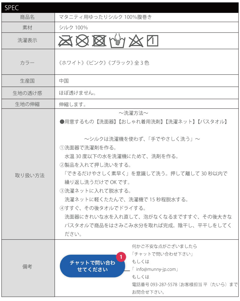 妊婦さんのために作られた「シルク100%腹巻き」です。